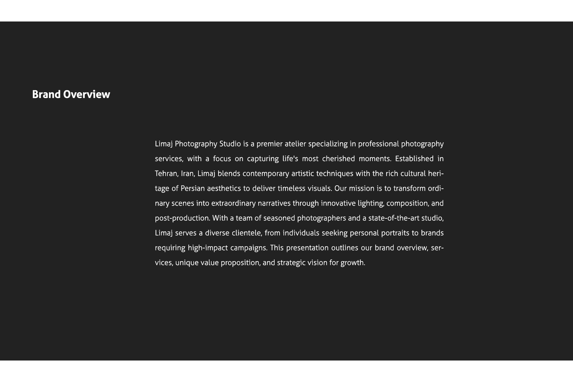 آتلیه لیماژ یک آتلیه تخصصی در حوزه کودک و عکاسی دوران بارداری است. واژه ی لیماژ به معنی تصویر بوده که در کنار کلمه ی فرانسوی آتلیه ( Atelier ) به معنای کارگاه، کارگاهی برای خلق تصاویر می سازد.
