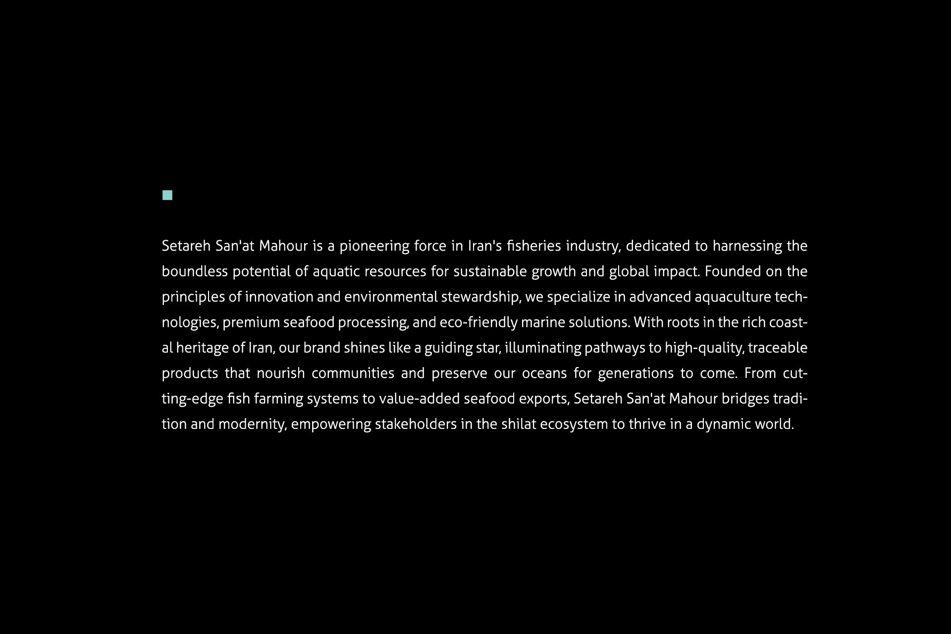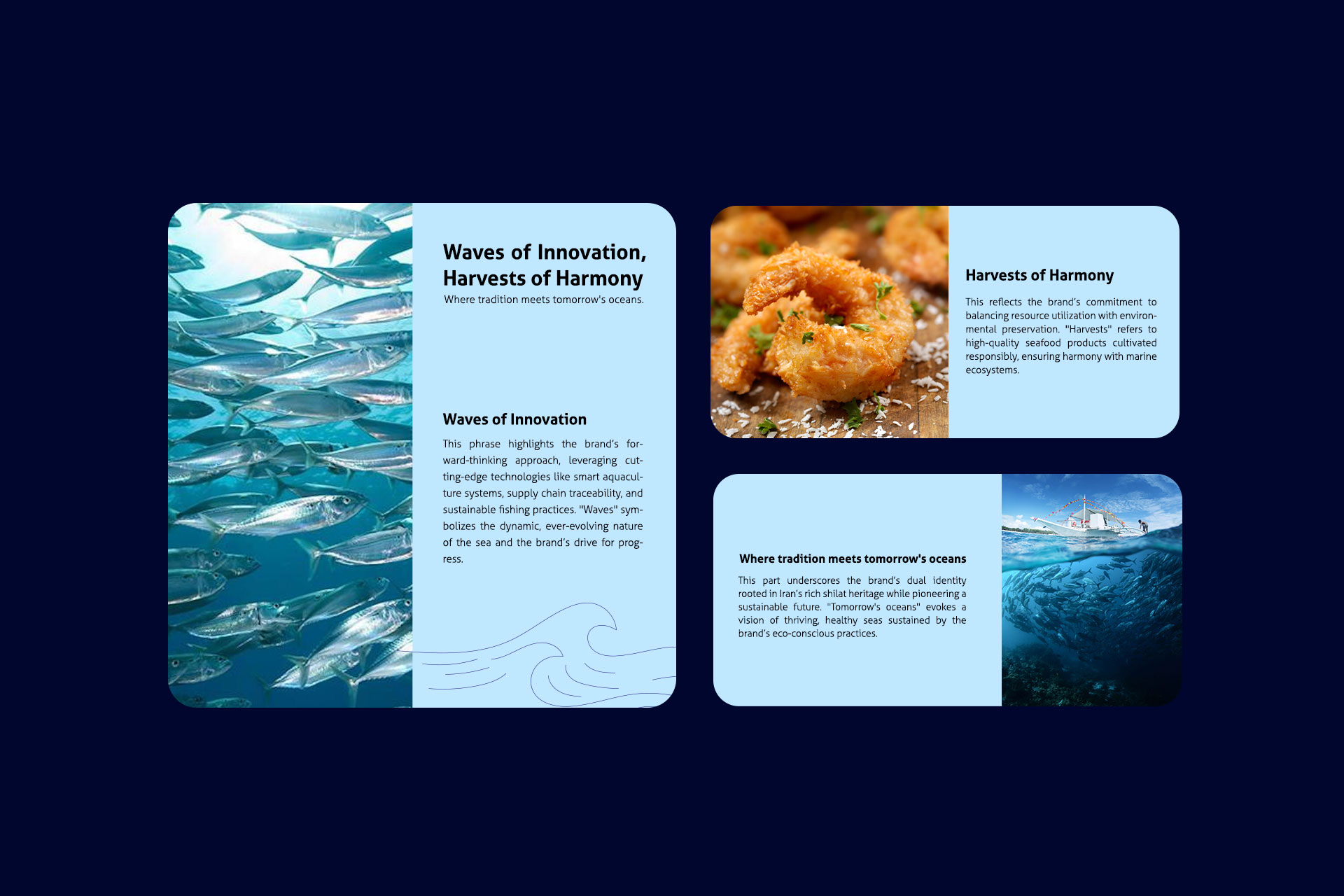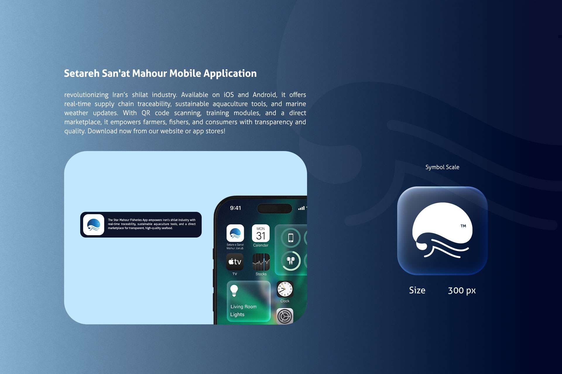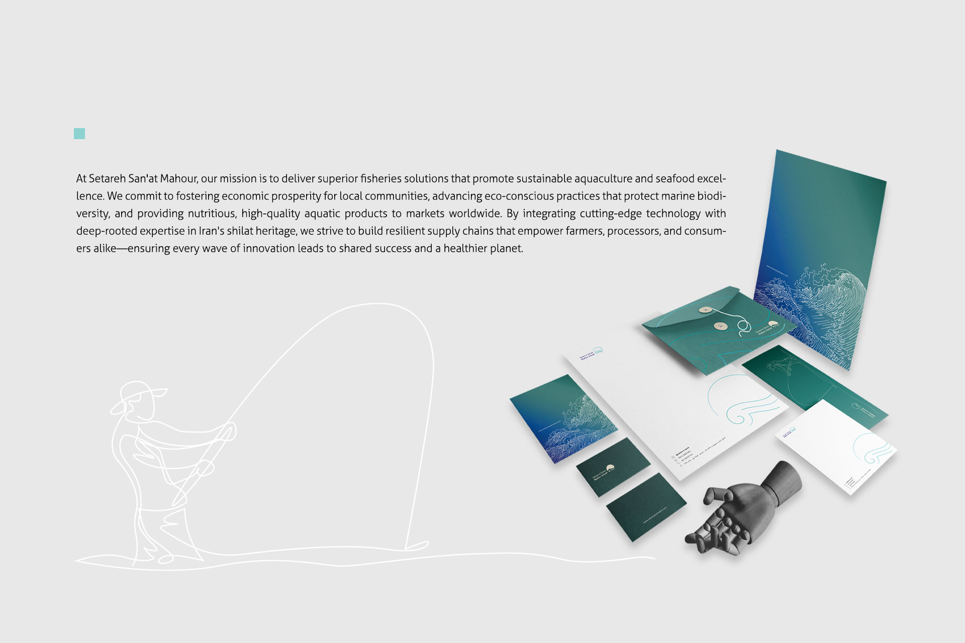 در طراحی این لوگو، سعی بر این شده است تا به ساده ترین شکل حوزه فعالیت نمایان باشد. به دلیل فعالیت در حوزه شیلات، از اِلِمان ماهی در طراحی این لوگو استفاده شده است.