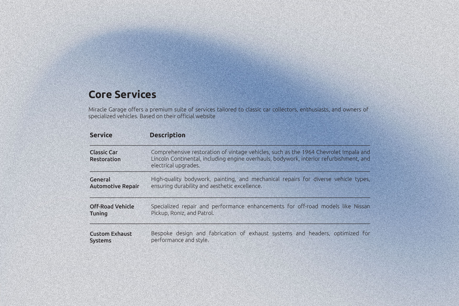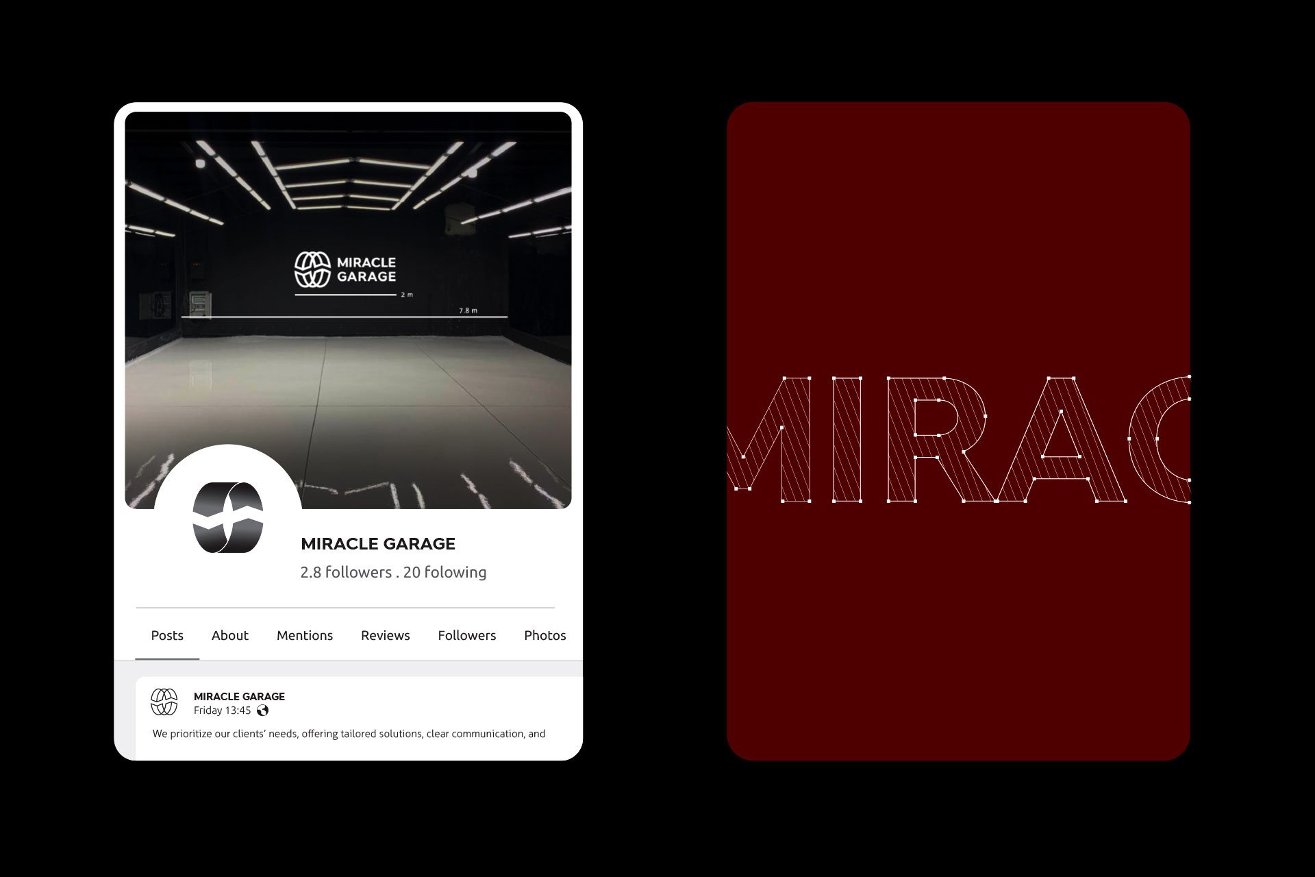 در طراحی لوگو برند میراکل ، از سبک انتزاعی یا Abstract استفاده شده و سعی بر این شده که لوگو ، حیطه کسب و کار گاراژ را نشان دهد . طراح لوگو مجموعه آی دیزاین ، چرخه بازسازی و نوسازی و تعمیر را نشان داده است و با دقت زیاد ، میتوان حرف M را در لوگو دید .
